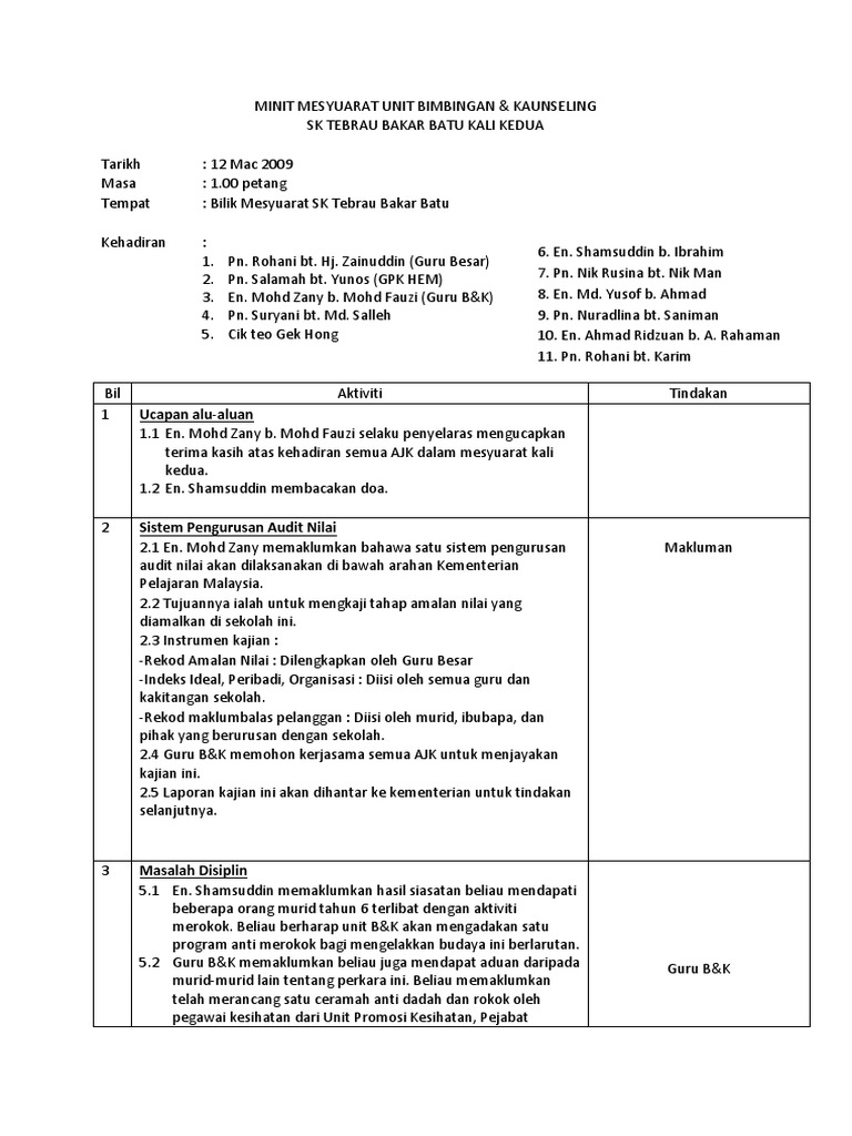 Minit mesyuarat spbt bil 1 from image.slidesharecdn.com So please help us by uploading 1 new document or like us to download Contoh minit mesyuarat persatuan ibu bapa dan guru. Minit mesyuarat panitia tmk kali kedua 2017. Sekian sahaja perkongsian kami dalam posting kali ini. Terdapat beberapa perkara tentang minit mesyuarat yang perlu ditekankan dan diambil perhatian. 1 sekolah kebangsaan dato ahmad musa minit mesyuarat jawatankuasa kurikulum kali pertama 2016 tarikh : Bilik mesyuarat skdam kehadiran : Minit mesyuarat hal ehwal murid kali ketiga 2018sekolah rendah kebangsaan sultan abdullah, kuantan bil.